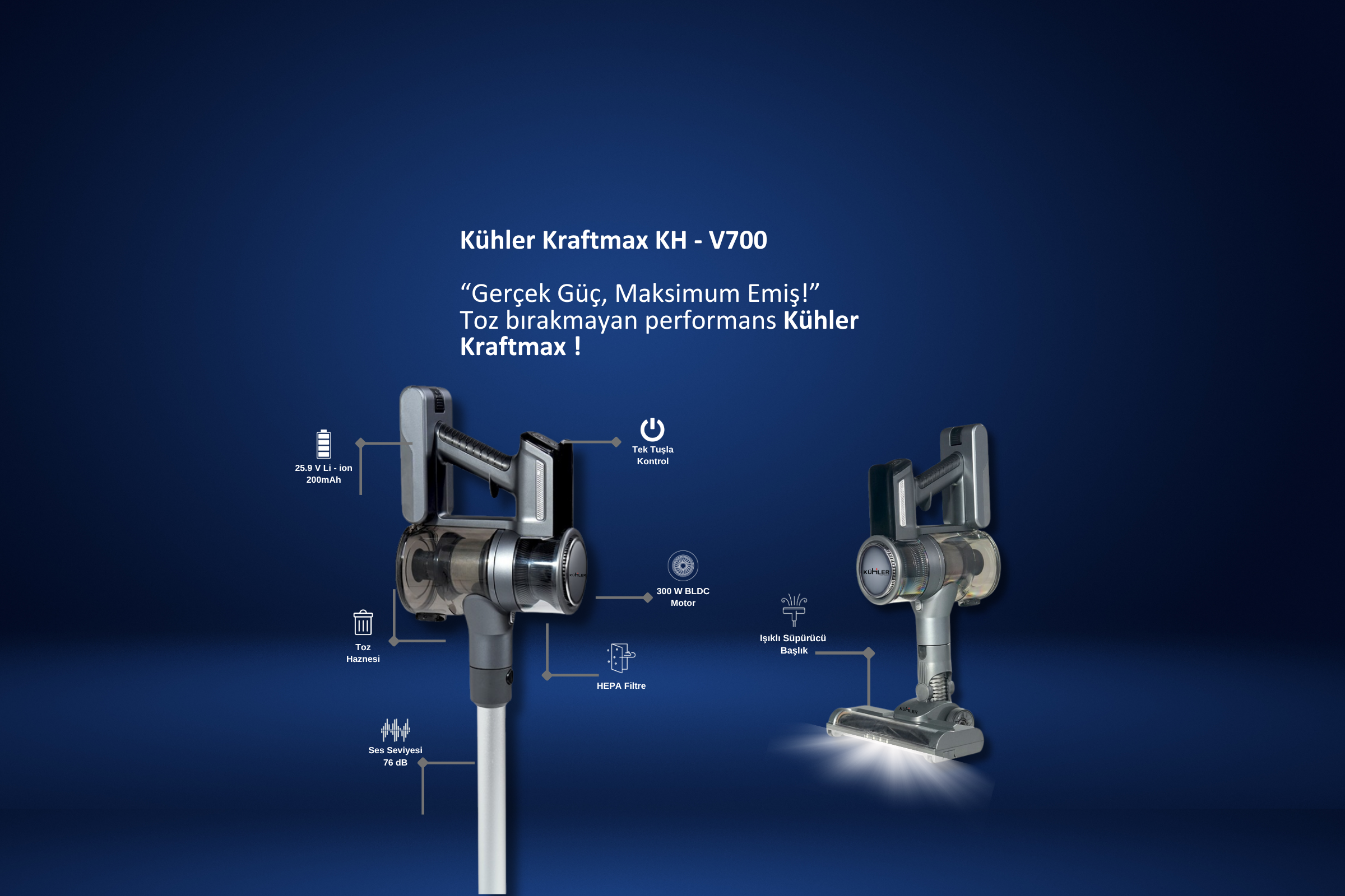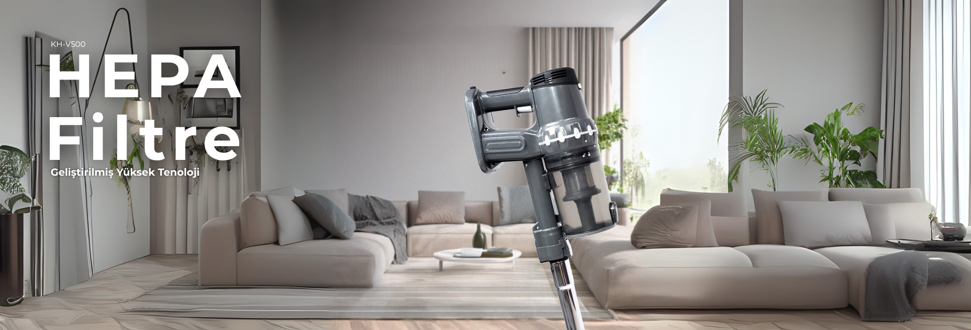 KH-V700 Metalik Gri Kablosuz Şarjlı Elektrikli Dikey Süpürge