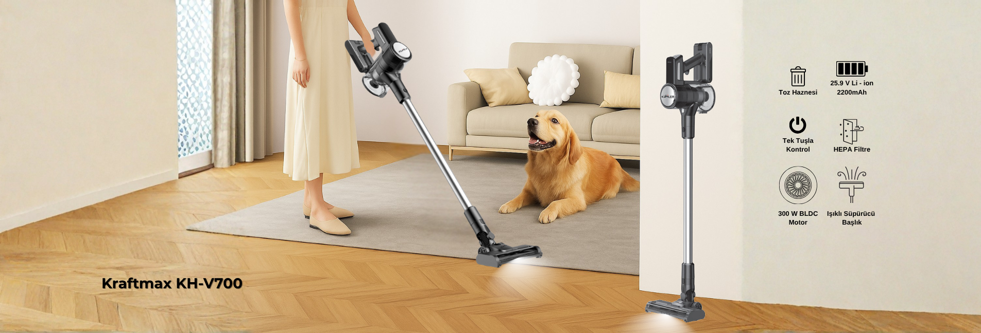 Kühler Homart KH-V300 1009 Turbo Fırçalı Dikey Kablosuz Şarjlı Süpürge